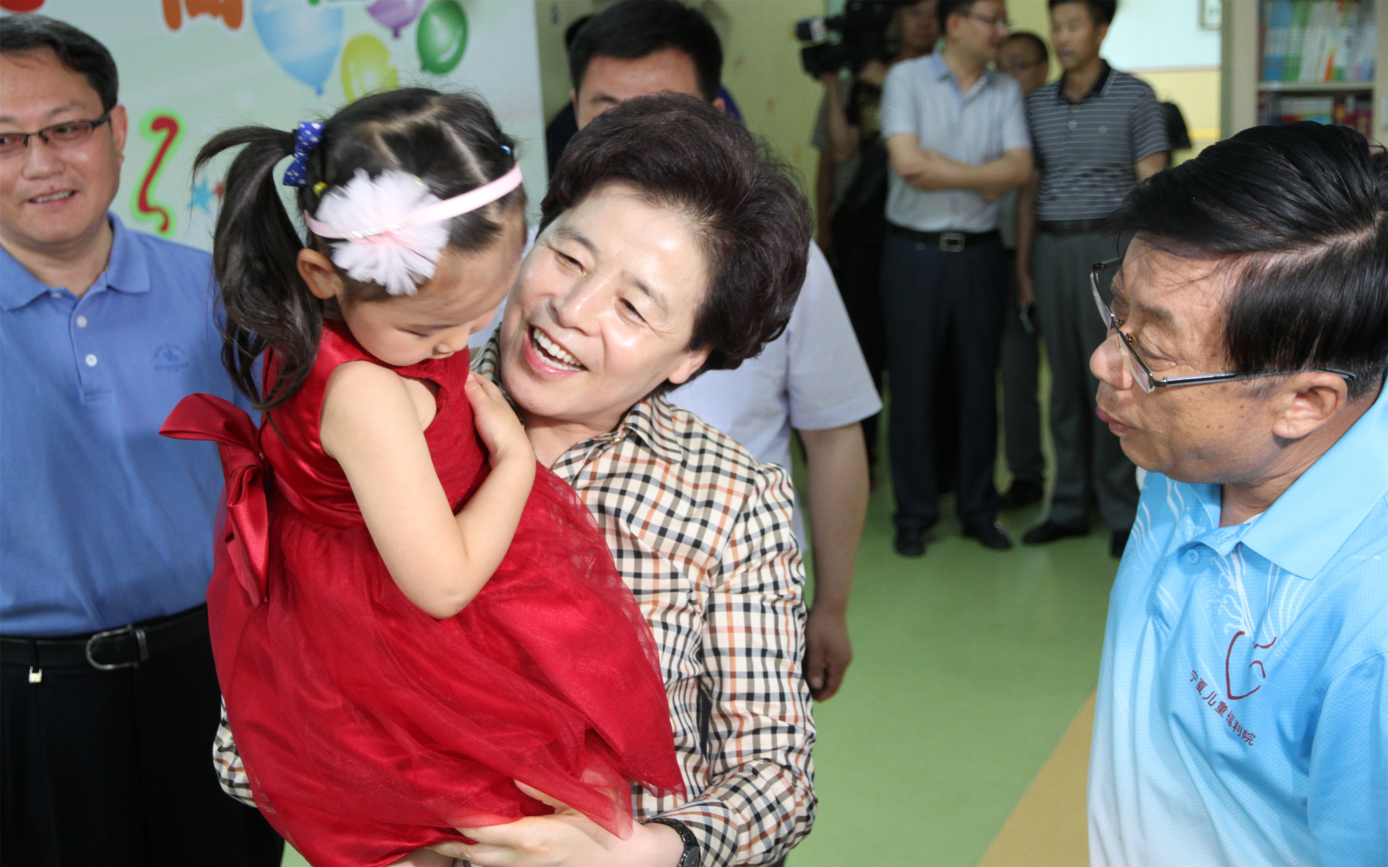 咸辉主席和孩子们一同佩戴上了鲜艳的红领巾,在观看孩子们表演的同时轻声合唱童谣,与孩子们亲切交谈,并提出殷切希望。她说:“福利院孩子们的成长我一直牵挂在心,这些特殊的儿童群体值得全社会,特别是各级政府和有关部门的关爱。我们都应该有一颗感恩的心,我想小朋友们和我一样,都很感恩我们的党和政府,感恩我们的老师、阿姨。”随后,咸辉主席在政府办公厅、民政厅、残联、团委主要负责同志的陪同下参观了孩子们的生活、学习环境,了解他们在医疗、康复方面的情况,对儿童福利院全体职工的辛勤付出表示感谢。最后,咸辉主席强调:“儿童福利事业是一项伟大崇高的事业,也是一项为人民服务的事业,这个事业非常重要,离不开政府、家庭、社会、每个人的支持和关注。”